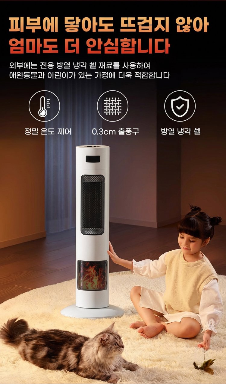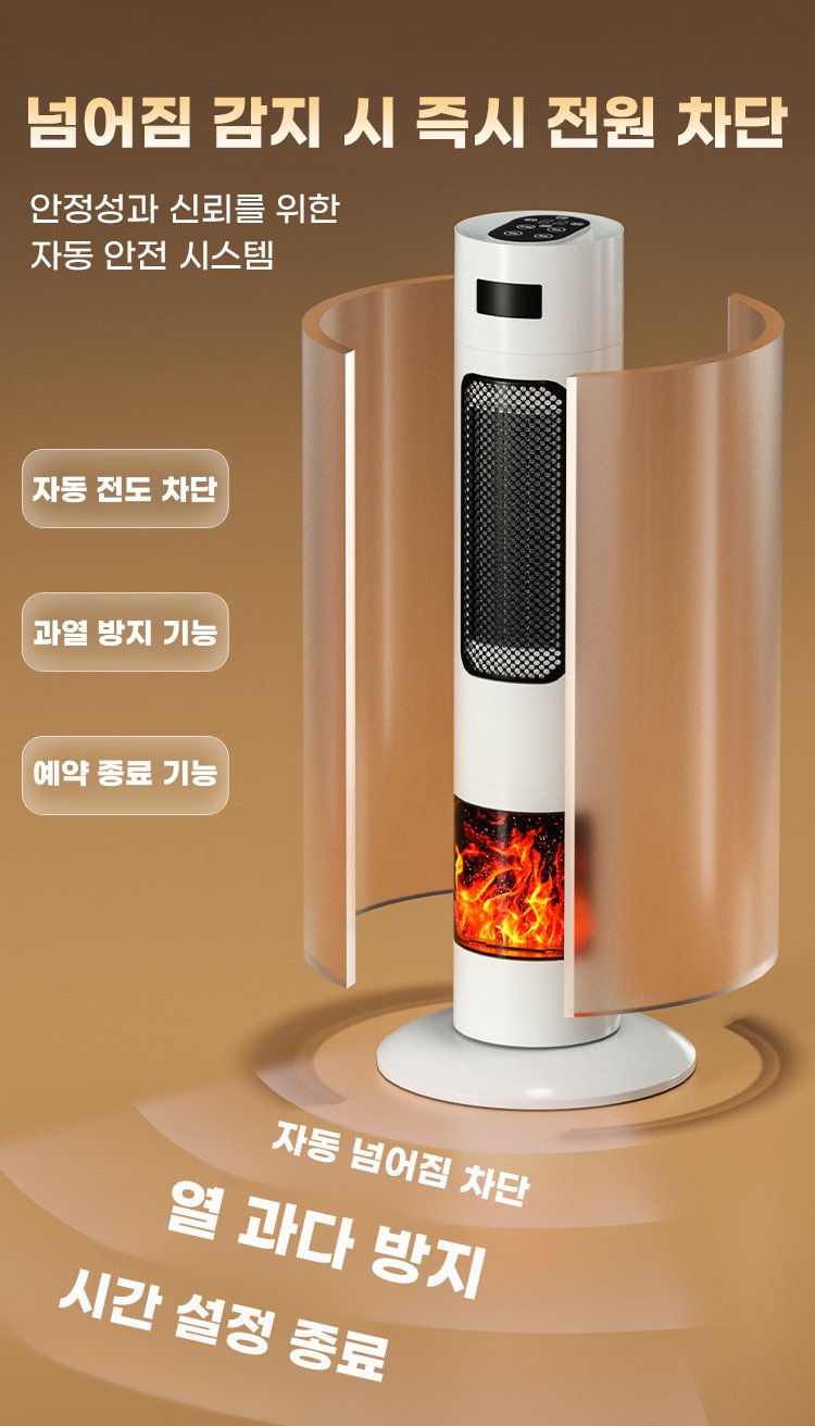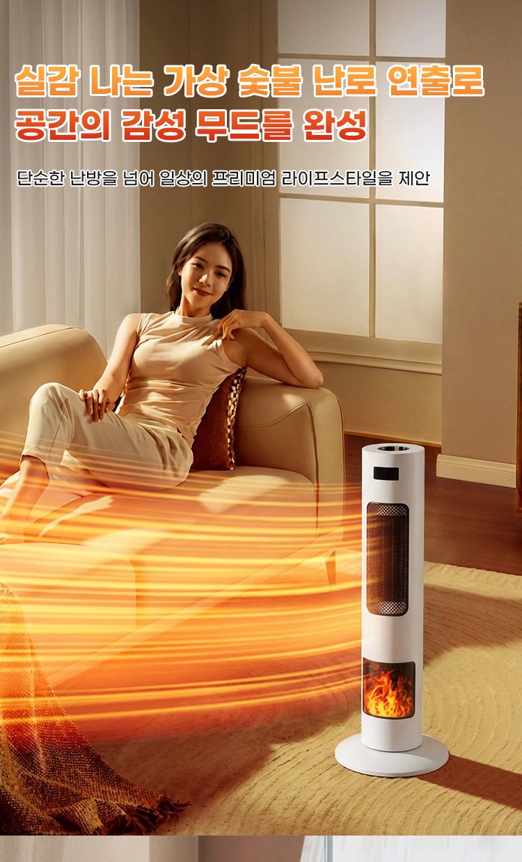 ● 스마트 원격 제어 기능으로 언제 어디서나 간편하게 온풍기 작동 및 온도 조절이 가능합니다. ● 스탠딩 디자인으로 공간 활용도가 높아 거실, 사무실 등 다양한 장소에 세련되게 어울립니다. ● 불꽃 효과가 실제 벽난로처럼 아늑한 분위기를 연출해 인테리어 소품으로도 탁월합니다. ● 강력한 온풍 성능으로 빠르게 실내 온도를 높여 추운 겨울에도 따뜻하게 보낼 수 있습니다. ● 저소음 설계로 밤에도 방해 없이 조용하게 사용할 수 있어 가족 모두 안심하고 사용할 수 있습니다.