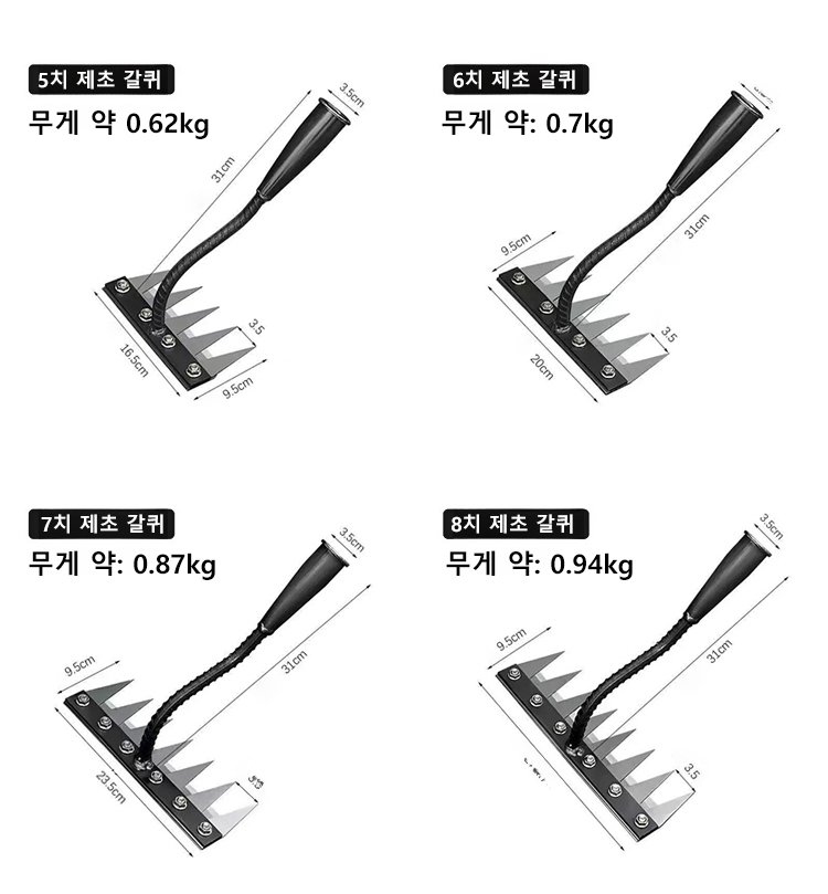 색상:오치 나사꽃 호미, 육치 나사꽃 호미, 칠치 나사꽃 호미, 팔치 나사꽃 호미